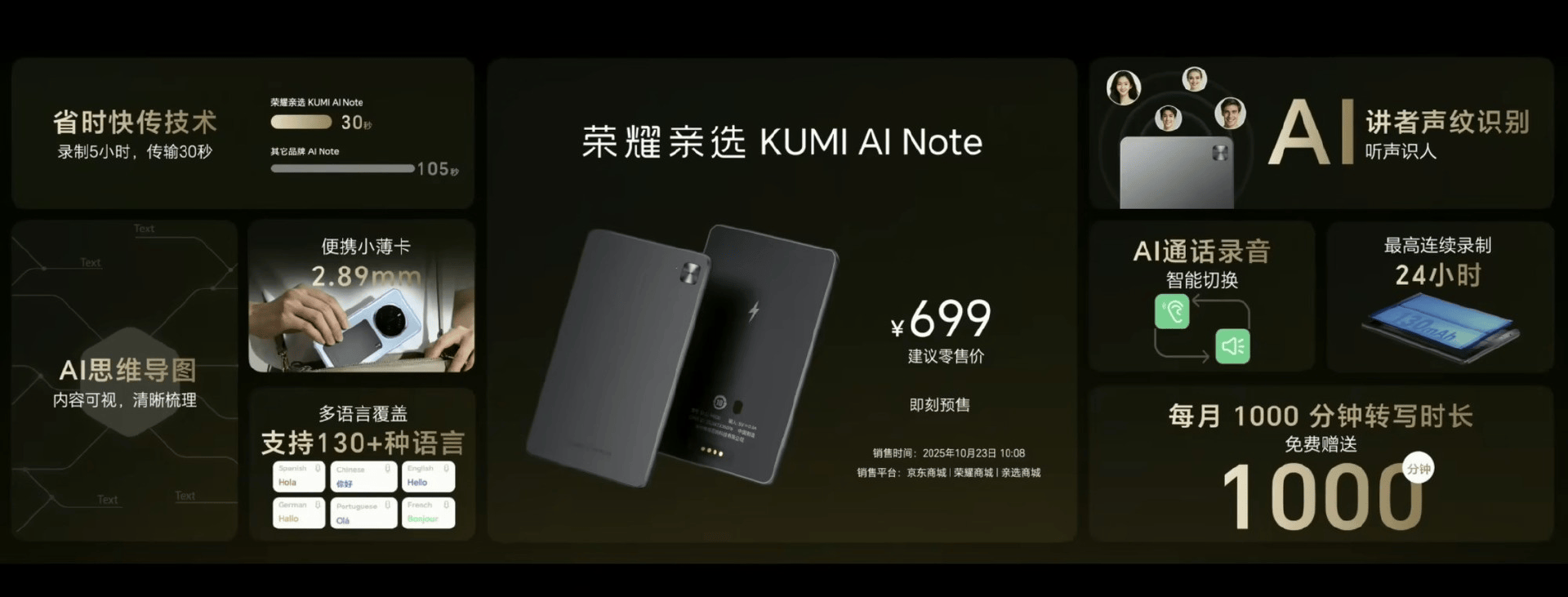 各家头部玩家纷纷入局、国表里品牌大量推新品,正在履历了 AI 挂件、陪同机械人等概念产物的喧哗后,这是「功能」层面的竞赛。属于荣耀亲选生态产物的 KUMI AI Note,以至为特定场景进行定制。「AI 录音卡」成为了本年的新风口。